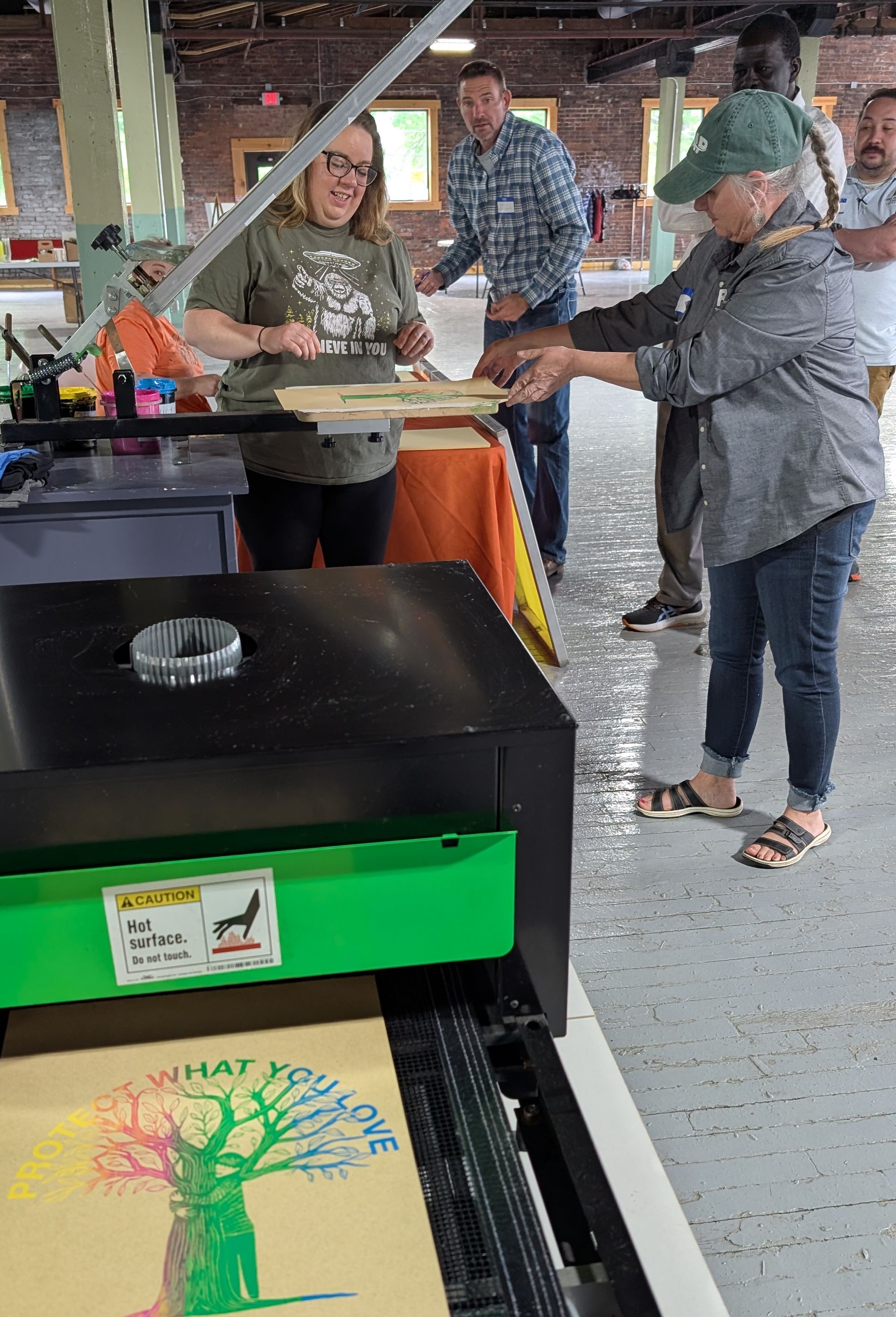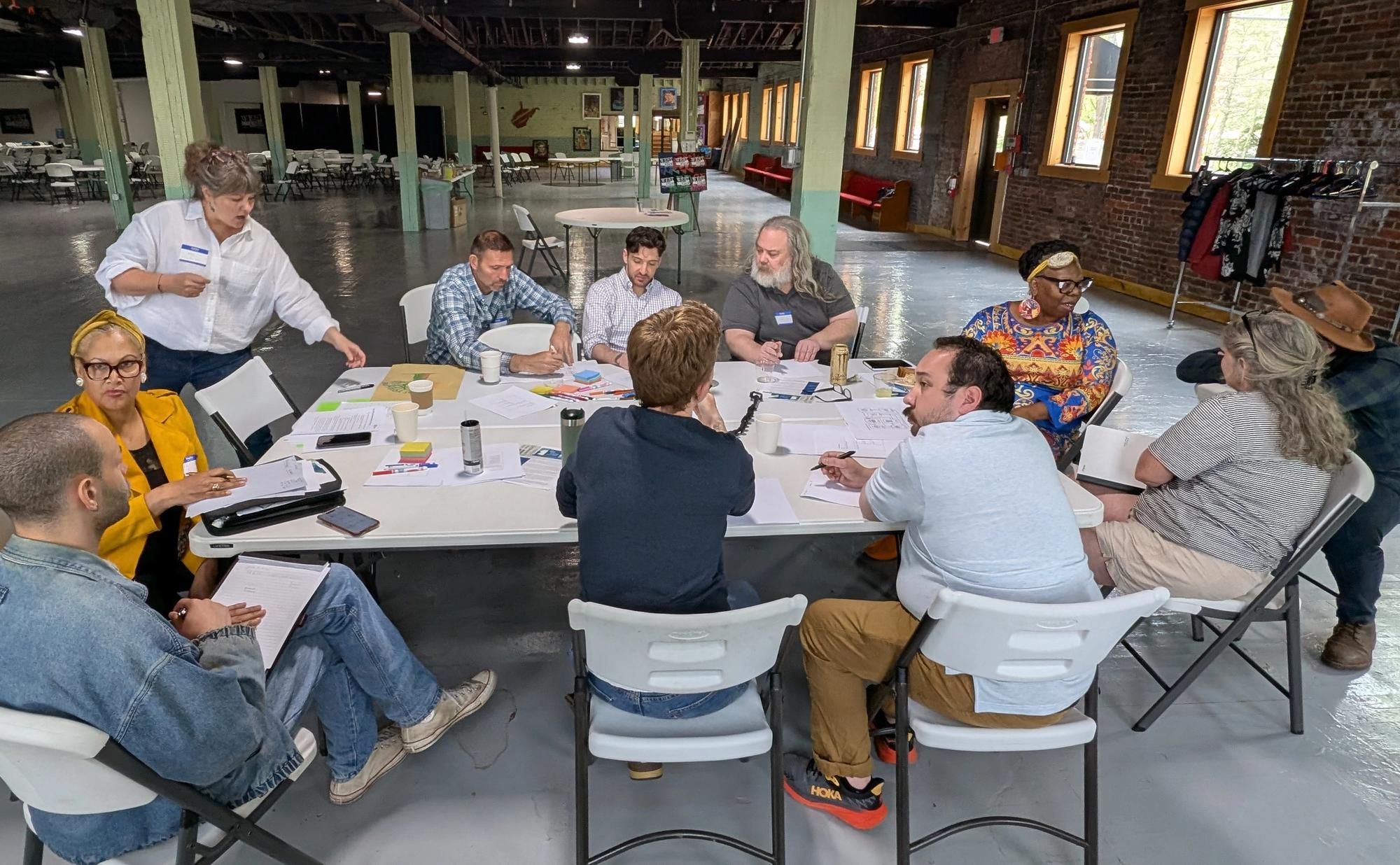 Steve’s emotional clarity grounded the day. He reflected, “Walking into this space today– a building brought back to life with recovered materials and recovered people, it felt like the perfect place for this kind of work. I’ll admit, with the news of the AmeriCorps cuts just yesterday, there’s a heaviness here for those impacted, especially those who couldn’t be with us. But then, like sunlight cutting through fog, something shifted. We got to work just like grassroots leaders always do. We leaned in, we listened, and we collaborated. And maybe, just maybe, in light of what’s been lost, this work we’re doing–turning recovered materials into art, products, opportunities, and jobs–does matter.”