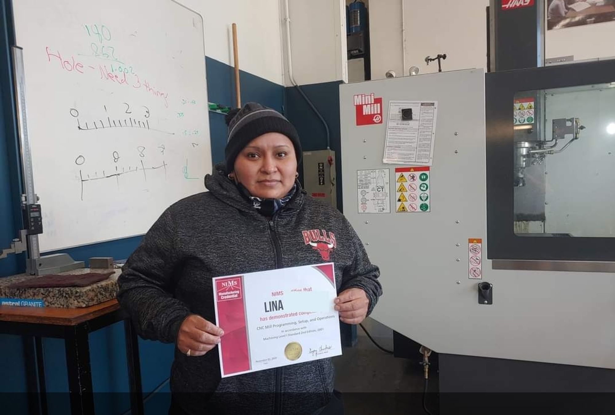 Receiving CNC training at JARC was a new experience for her. Everything from the terminology to learning to code was new. “They give you a book to read, do the work and move on to hands-on training. That’s how you learn,” she said. Though she doubted herself at the beginning, she became confident enough to show other people how to use the machine. Now as a certified CNC operator, she encourages other trainees to get their certifications. When they are reluctant, Cedasero tries to convince them.