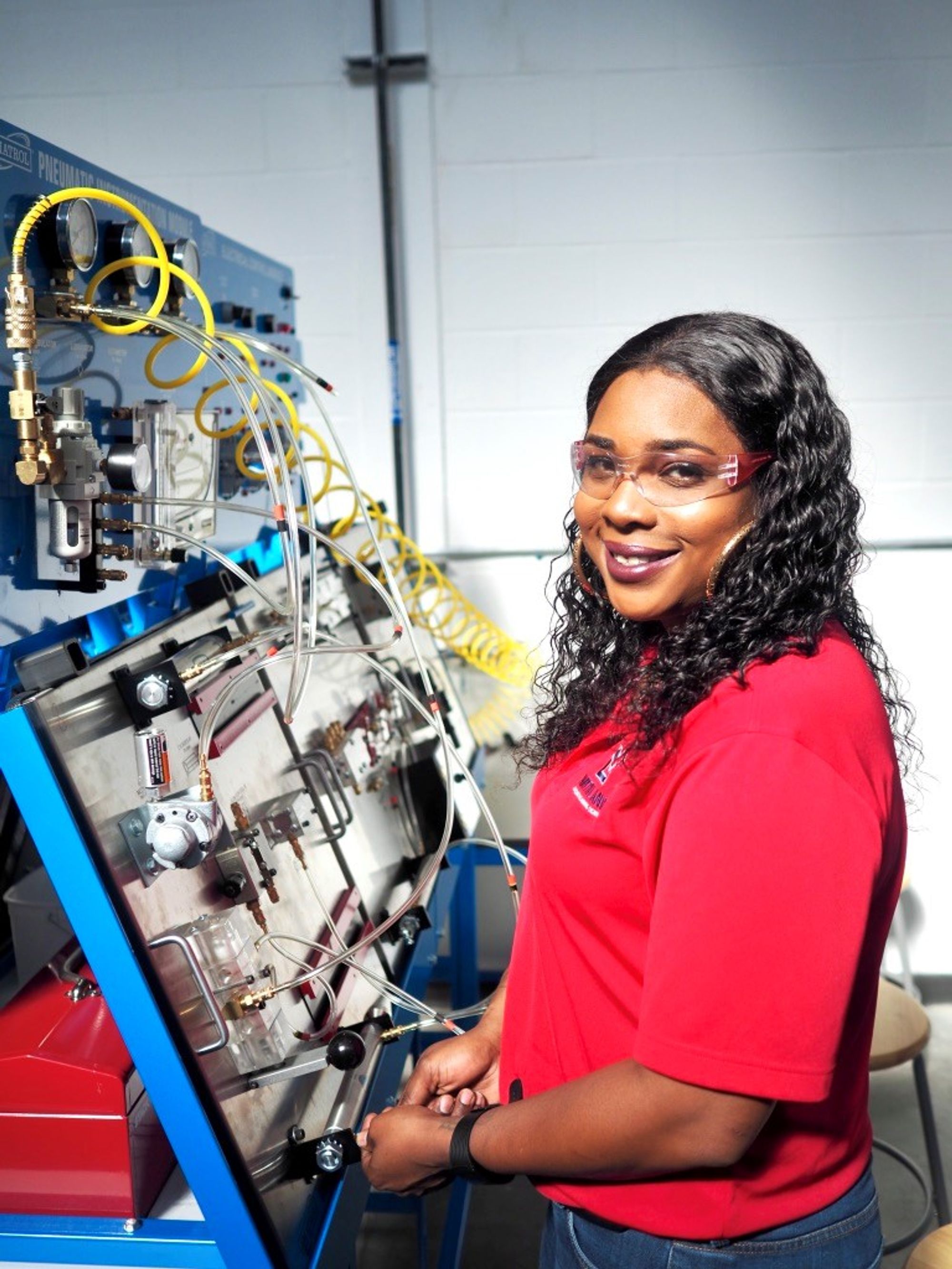 “I'm a visual learner. That's how I've always been,” explained Hall. “You can give me a book to read, but if you can show me in 30 seconds what to do, I will retain that information, understand it, and be able to break it down.” When NWTC exposed Hall to Buffalo’s manufacturing industry through various career fairs, she began to appreciate the job security that she was working on for herself. Many of the companies were looking for talented women and people of color just like her.