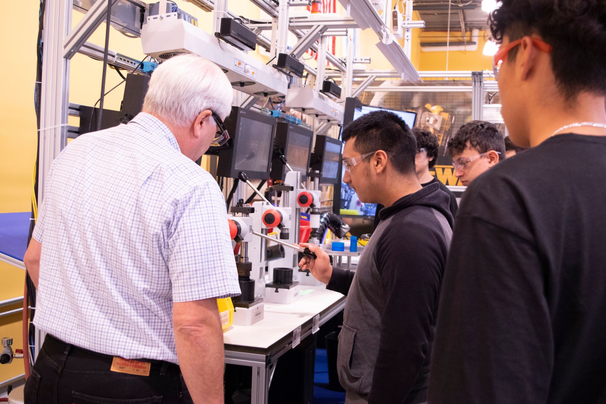 MxD Learn engages with high school students outside its headquarters through IGNITE: Mastering Manufacturing. IGNITE is a three-year high school curriculum developed in collaboration with Detroit-based LIFT (also a Manufacturing USA institute), community colleges, and high schools. IGNITE uses in-class industry-based projects to teach high school sophomores, juniors, and seniors skills that prepare them for careers in manufacturing while establishing connections for employment opportunities. The curriculum is designed to prepare students to become multiskilled technicians, technologists, and engineers. Students starting in their sophomore year can choose to take manufacturing-focused elective courses. These classes go beyond just increasing awareness; teachers are helping students develop core skills. Students learn through hands-on experience with technology used today in advanced manufacturing companies. The technology is accessible via two new technology labs at Waukegan High School. The lab was created by converting an old woodshop, the funding for which came from a large investment from the community -- including donations from Lake County Partners and the Siemens Foundation. The classroom and high school lab learning are supplemented by factory tours, demonstrations at MxD’s factory floor, and presentations by subject matter experts. At the end of their three years, the IGNITE cohort culminates in a team capstone project where students apply what they learned about digital manufacturing and cybersecurity to an industry problem showcasing their deep understanding of manufacturing materials, technologies, processes, and systems.
