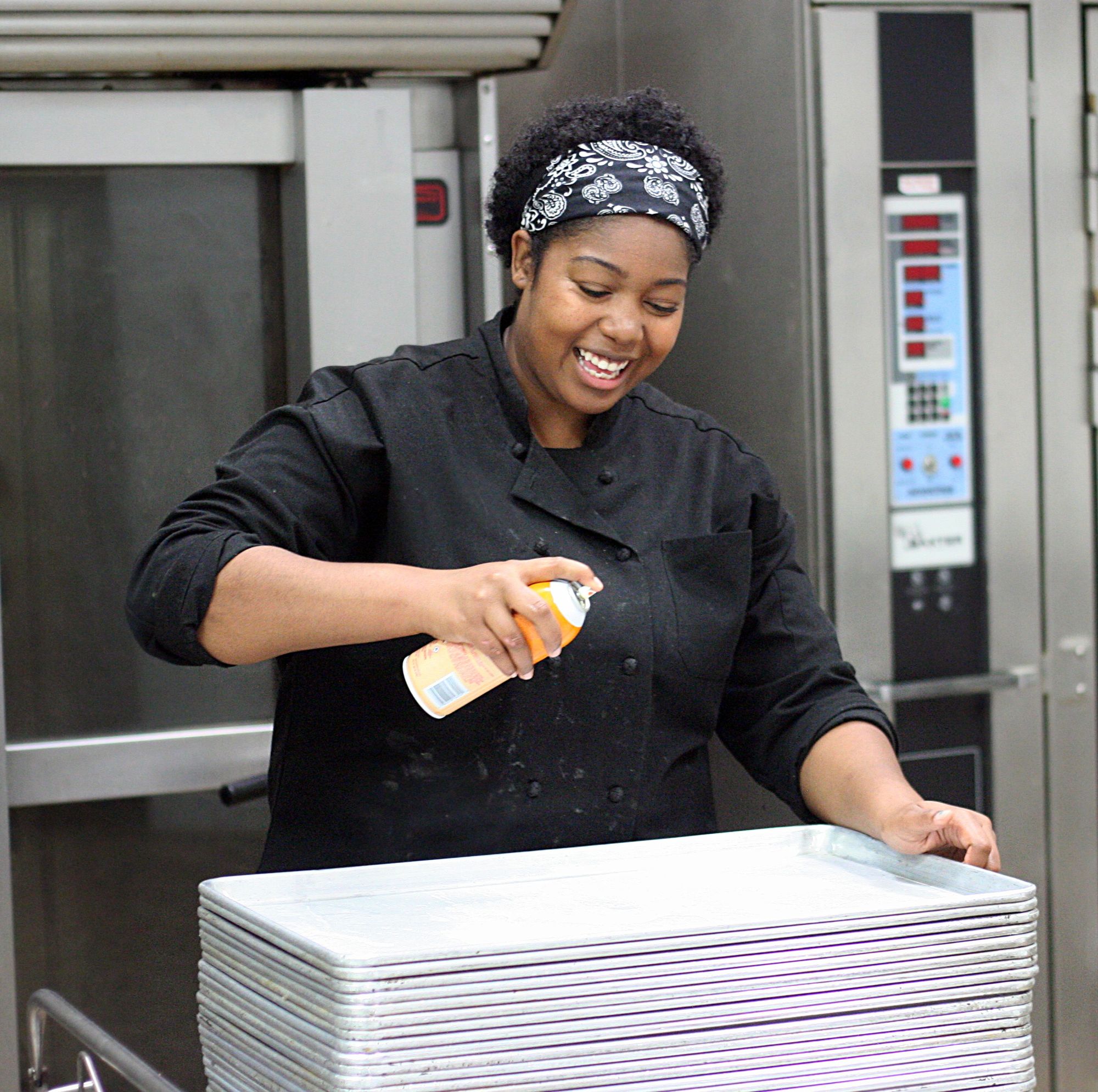 Culinary school was out of reach for her budget. “I thought I’d get paid to learn instead of paying for classes to teach me how to learn,” she says.